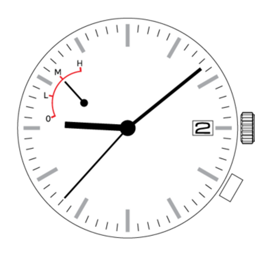 - Battery indicator wheel hand at 10:00: .21mm