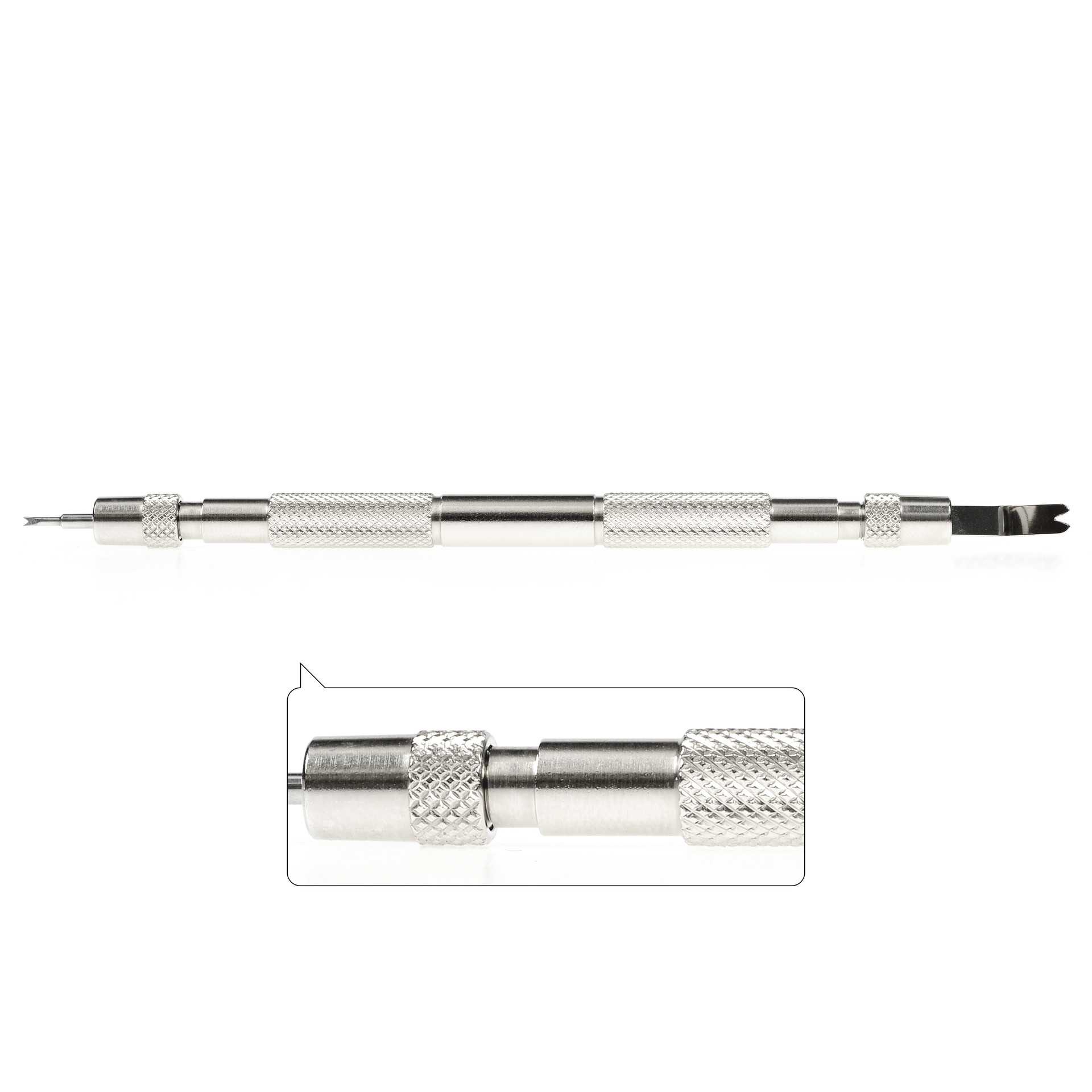 BERGEON 6111 '헤비 듀티' 스프링바 툴로 유명합니다. 스패튤러 포크 엔드 때문에라도 소장할 가치 충분합니다. 러그와 레더 스트랩 사이 틈 손쉽게 들어가며, 날카롭지 않아 스트랩과 러그에 상처를 잘 내지 않도록 디자인되었습니다. 특히 폭 넓고 두꺼운 스프링 바 사용해 공구에 높은 내구성 요하는 다이버 스타일이나 빅 워치 줄질에 적합합니다. 클래식한 툴이지만 여전히 현역입니다.