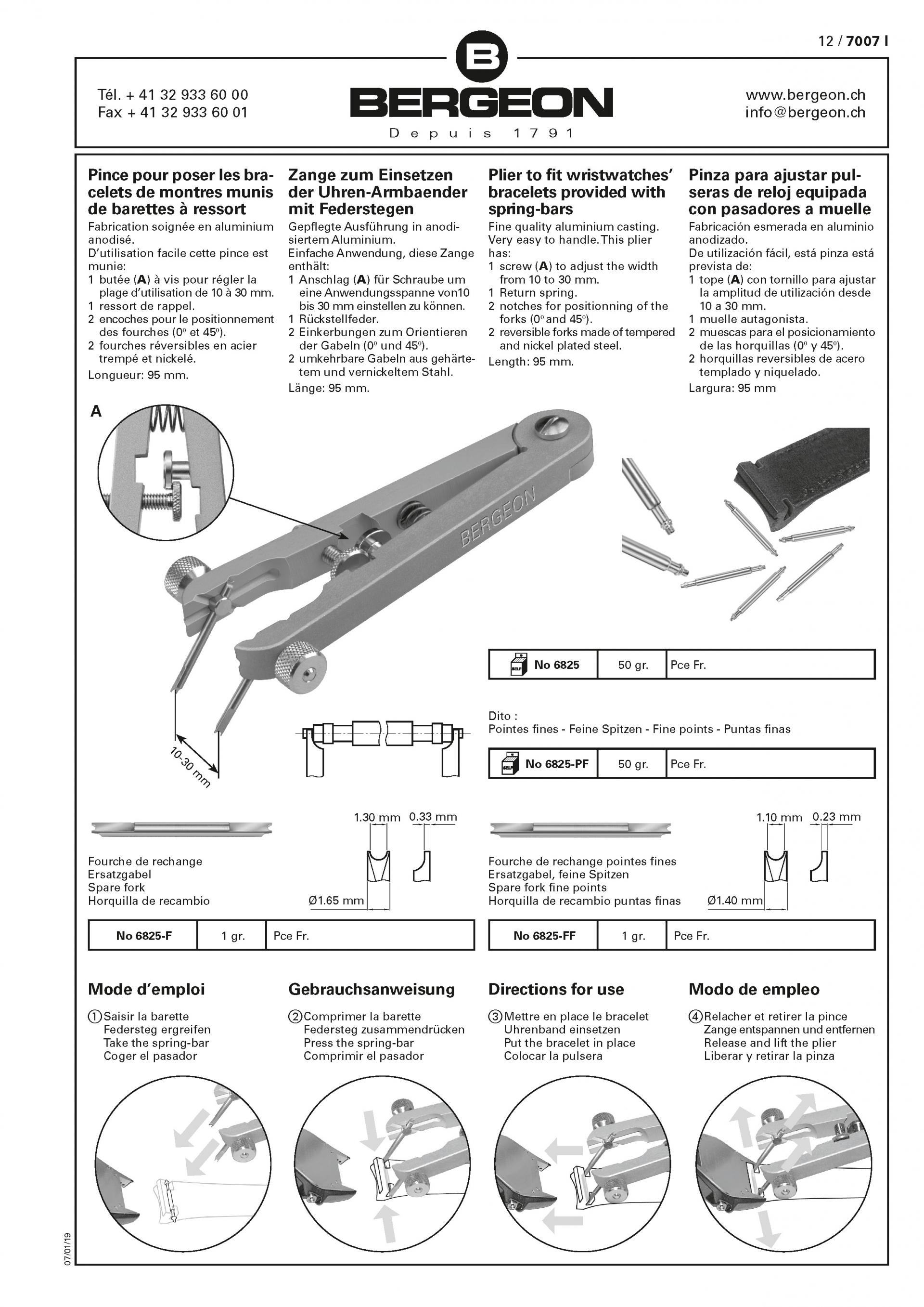 BERGEON 6825 브레이슬릿 플라이어 스페어 포크 / 1.00mm (단품)