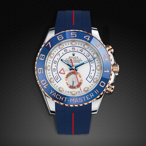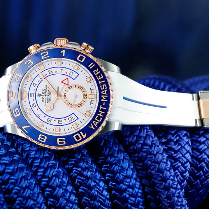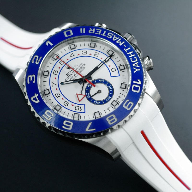 롤렉스 요트마스터 44mm 모델과 오이스터 클라스프에 정밀히 맞도록 설계된 가황 듀얼 컬러 고무 스트랩입니다. 이 스트랩은 블록드 인티그레이션(Blocked Integration) 기술을 적용해 요트마스터 44mm 케이스에 완벽히 밀착되며, 안정적인 장착을 보장하는 견고한 삽입물을 포함하고 있습니다.