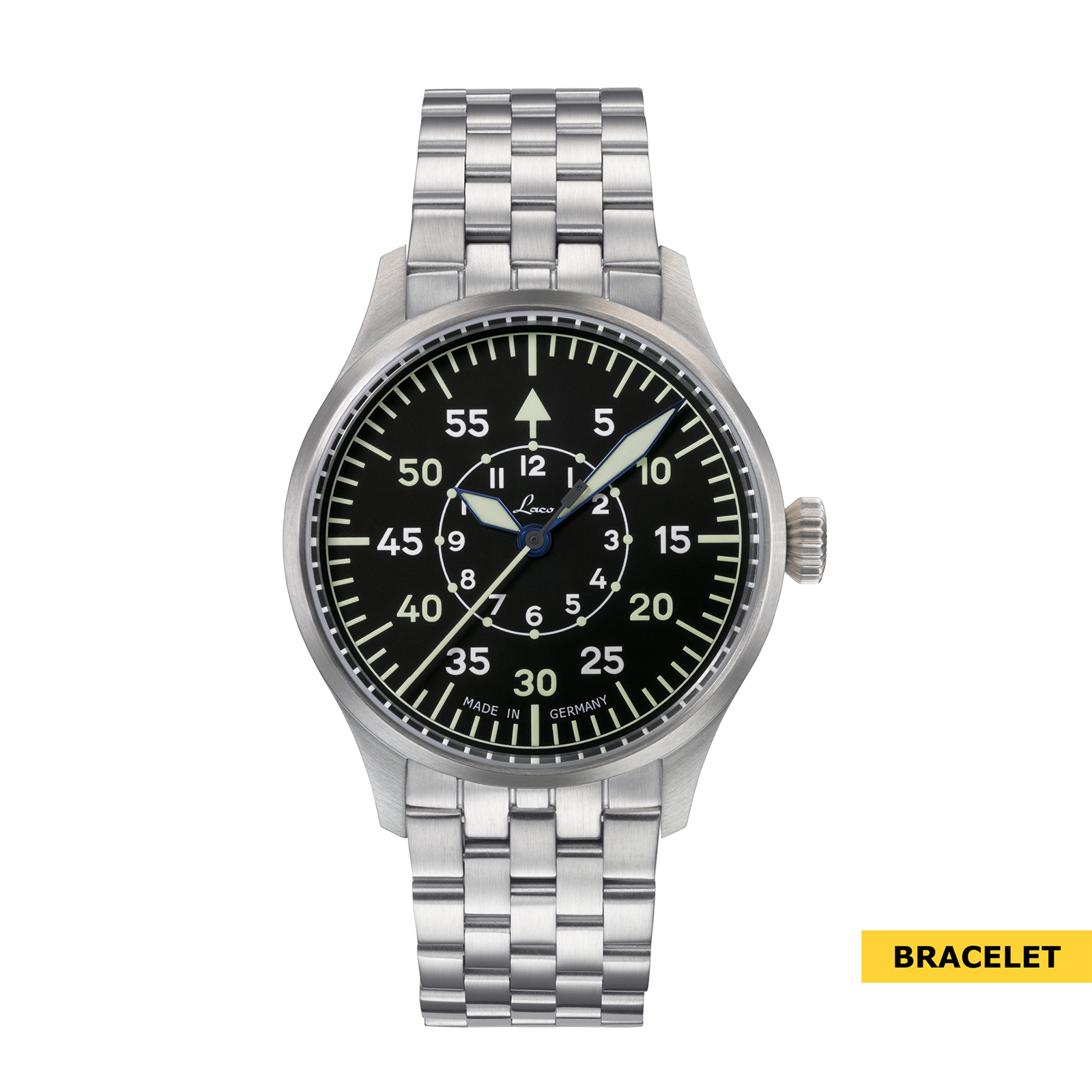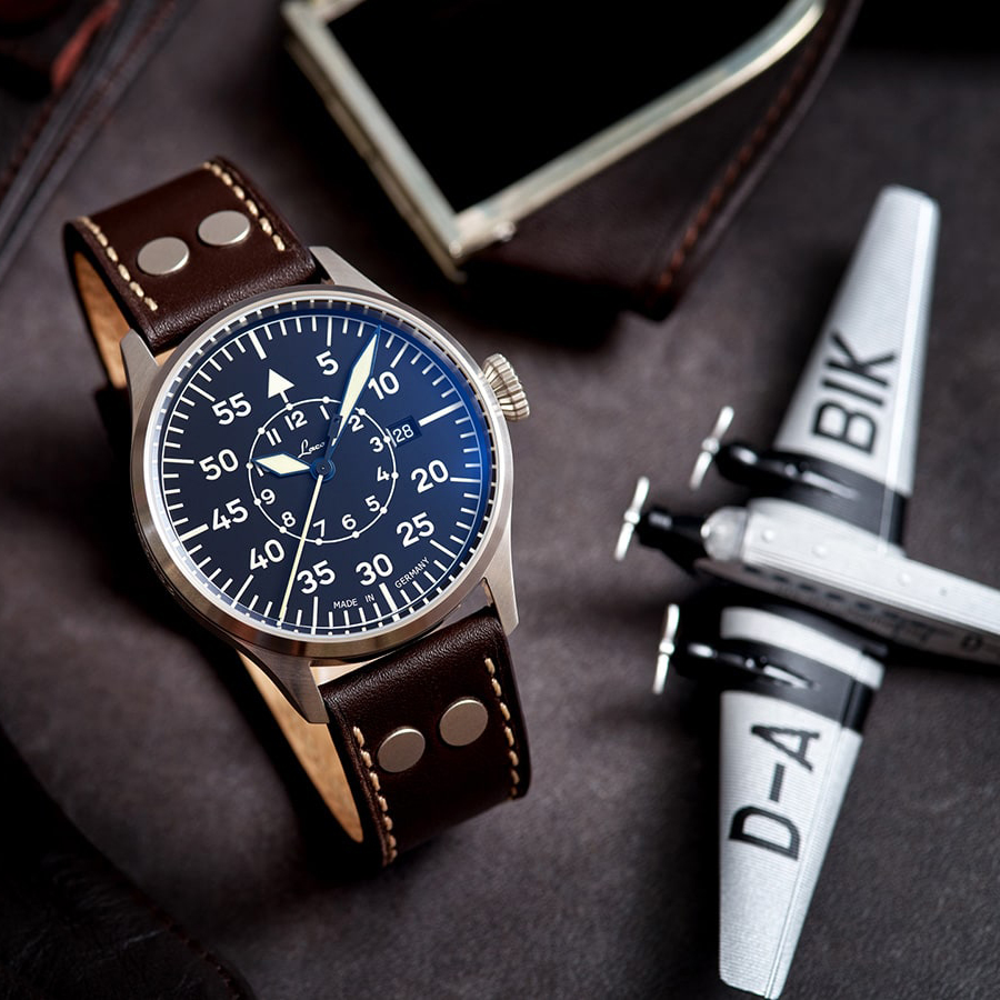 라코 로고가 있는 다이얼은 우아하고 클래식한 느낌을 줍니다. 반면, 노-로고 다이얼은 기능성을 중시한 오리지널 플리거의 헤리티지를 강조합니다.