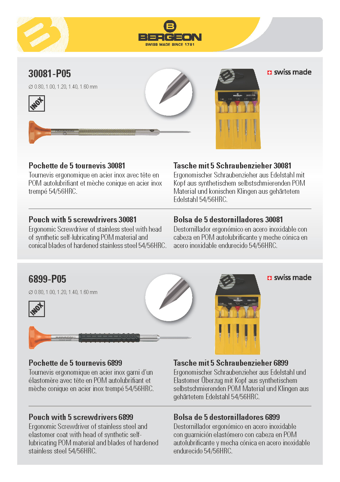 BERGEON No. 6899-P05 5 SCREWDRIVERS IN POUCH