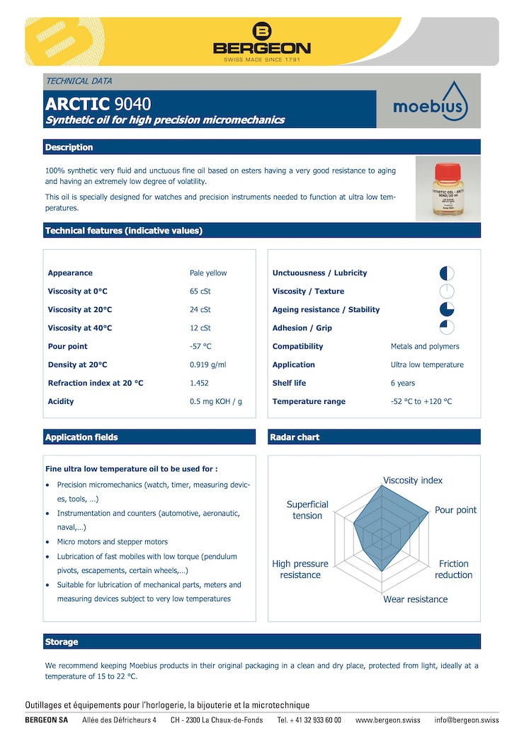 극저온용으로 특별히 제작되었습니다. 시계, 정밀 해상 및 항공기 계측기에 사용됩니다. 점도가 낮기 때문에 에필람 코팅 후 사용을 권장합니다. 2ml 병에 제공됩니다.