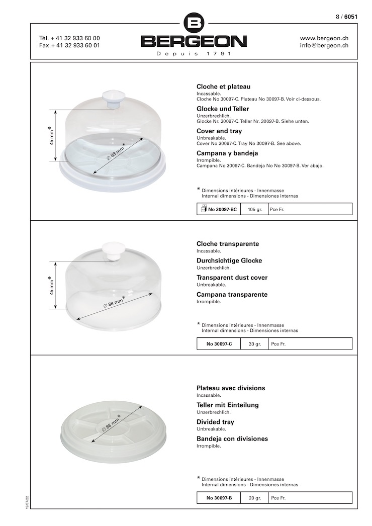 BERGEON 30097-BC PARTS TRAY AND COVER 100MM