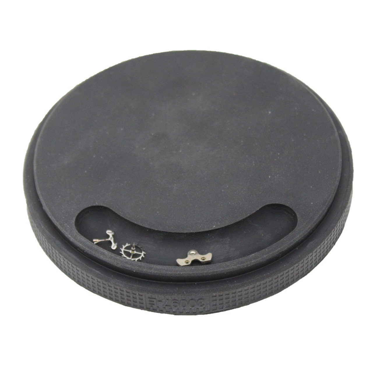 Bergeon 30097-C 더스트 커버와 함께 사용할 수 있는 고무 소재의 케이스 쿠션입니다. 양면으로 뒤집어 사용할 수 있는 쿠션의 한쪽 면은 오목한 형태이고, 다른 한쪽 면에는 작은 부품을 보관할 수 있는 곡선형 노치가 있습니다. 벤치 블록으로도 사용할 수 있습니다.