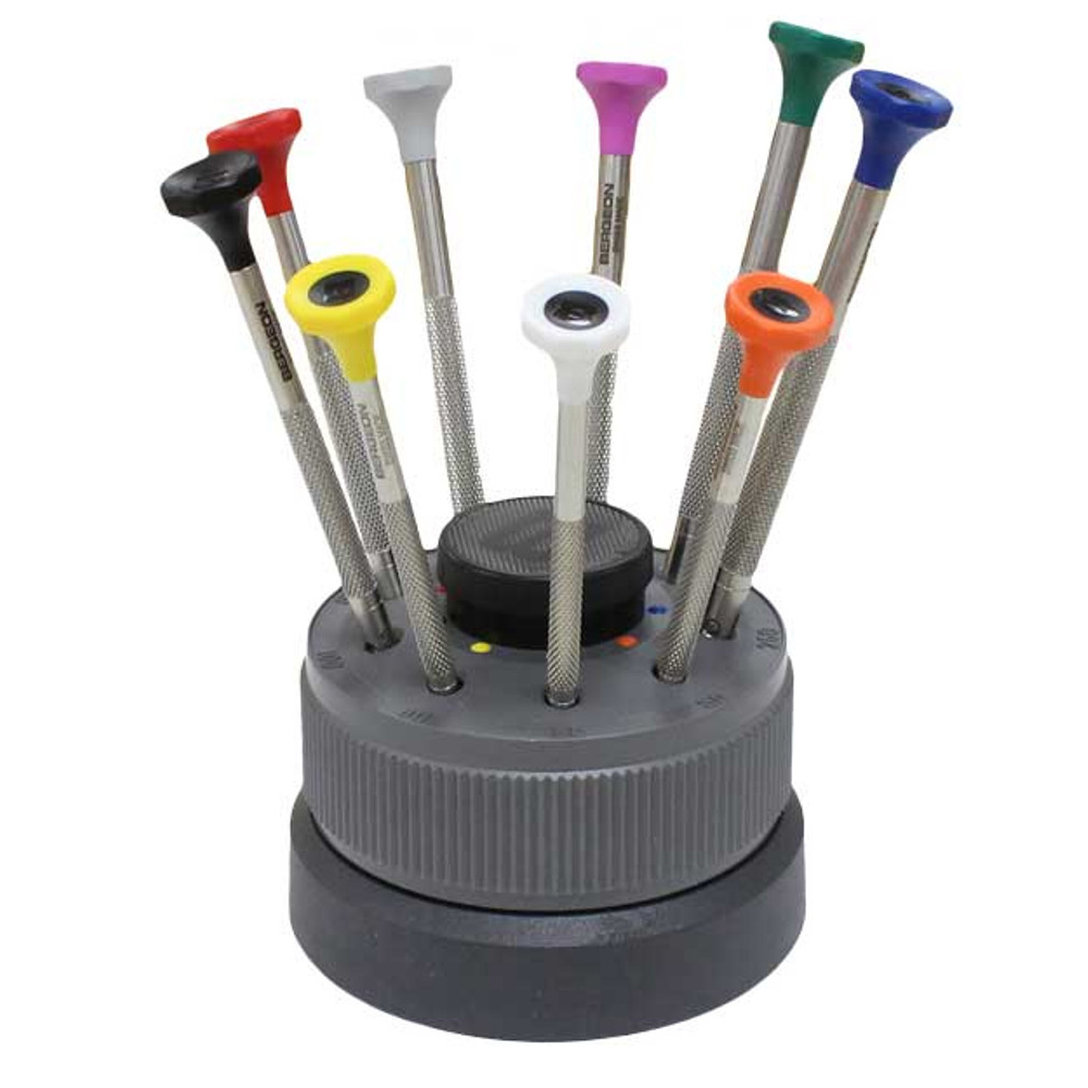 BERGEON 30081-S09 MINI WATCHMAKERS SCREWDRIVER SET ON ROTATING STAND STAINLESS STEEL