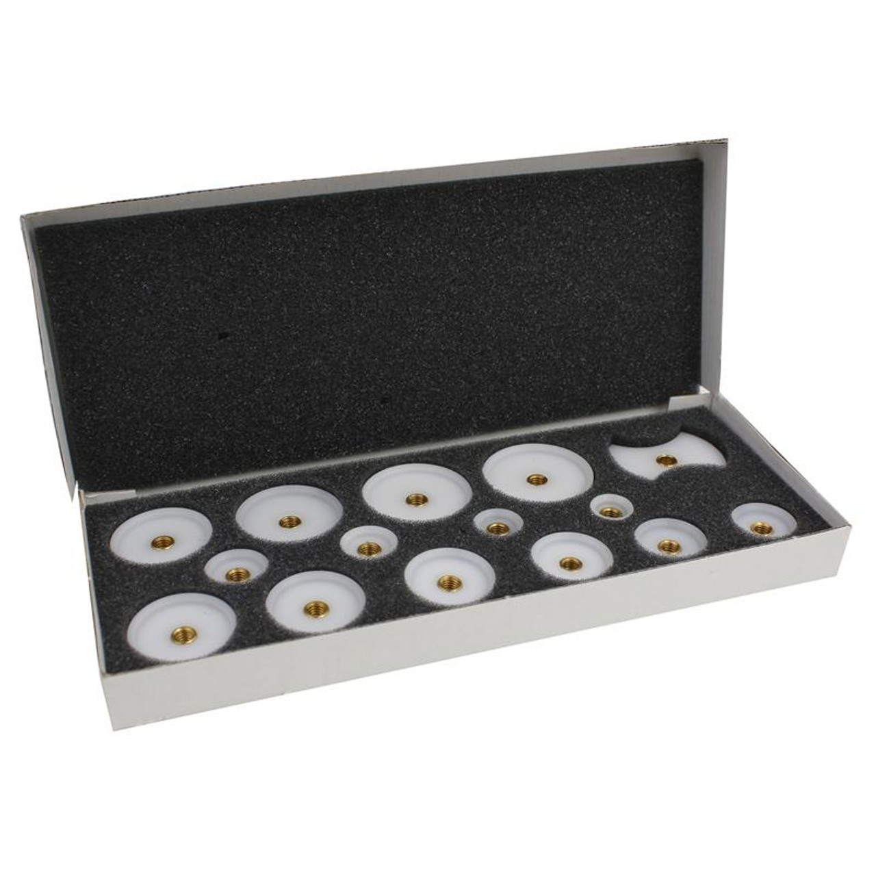 HOROTEC MSA06.522 REVERSIBLE DELRIN DIES FOR CRYSTALS WITH TENSION RINGS 15 PIECE SET
