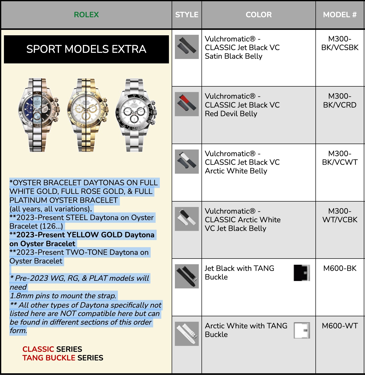 - 2023년 이후 출시된 스틸 데이토나 (126XXX 시리즈), 옐로우 골드 데이토나, 투톤 데이토나와 호환됩니다.