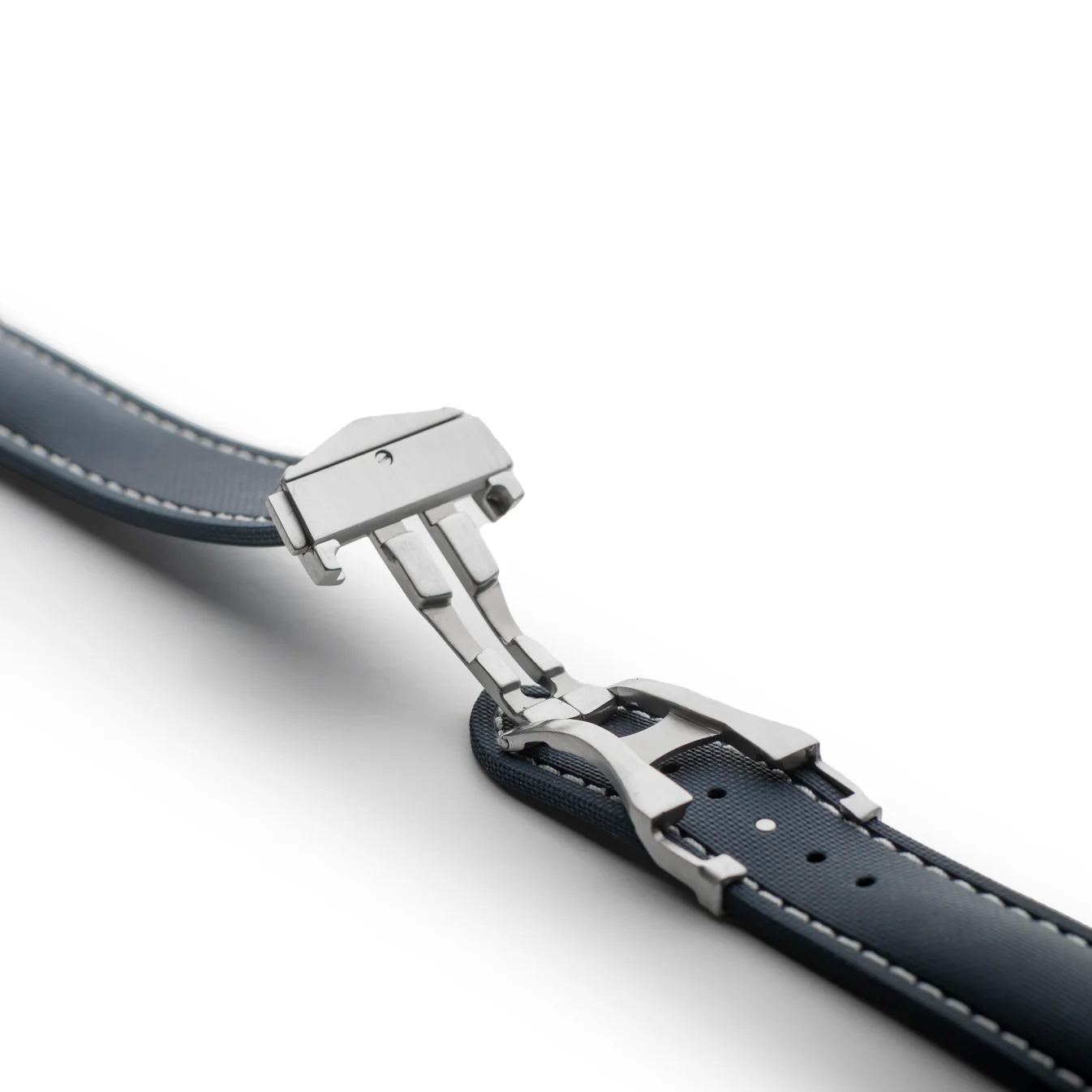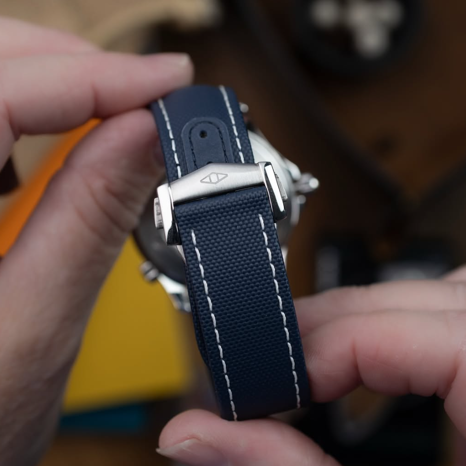 신형 아르템 디버클 세일클로스 스트랩은 HydroFlex™ 고급 러버 소재로 제작됩니다. 기존 제품의 단점이었던 길들이기 시간이 필요 없으며, 처음 착용하자마자 부드럽고 편안한 착용감을 느낄 수 있습니다. 표면 질감의 고급스러움은 그대로 유지되며, 시계를 한층 더 세련되게 만들어 줍니다.