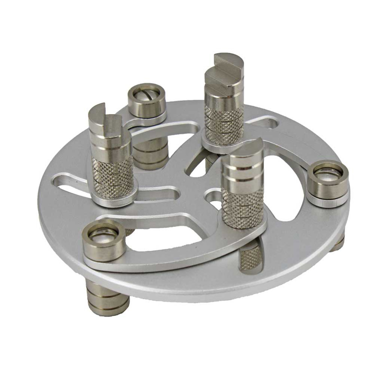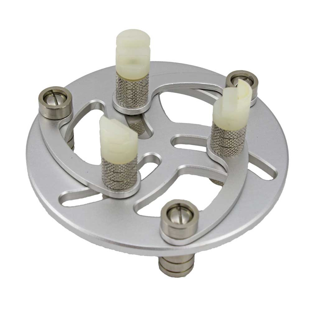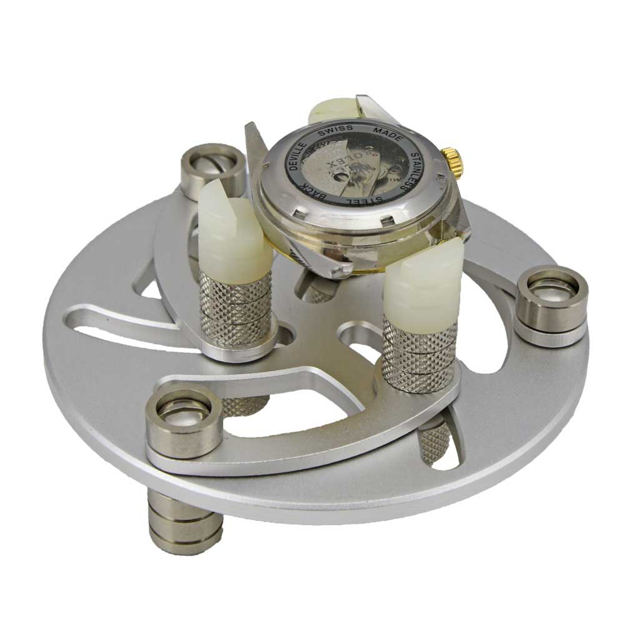이 새로운 시계 케이스 홀더는 전문 시계 제작자를 위해 설계되었습니다. 시계는 세 개의 나일론 포스트로 안전하게 고정됩니다. 포스트를 독립적으로 풀어 적합성을 조정하고, 위치를 고정하기 위해 조여주세요. 최대 개방 지름은 60mm입니다.