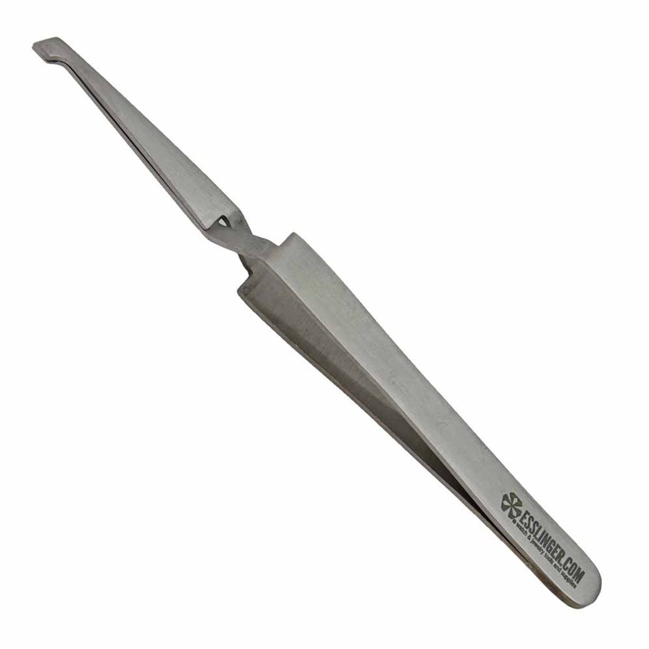 Bent Tip Cross Locking Tweezer 5 Inch with Serrated Tips