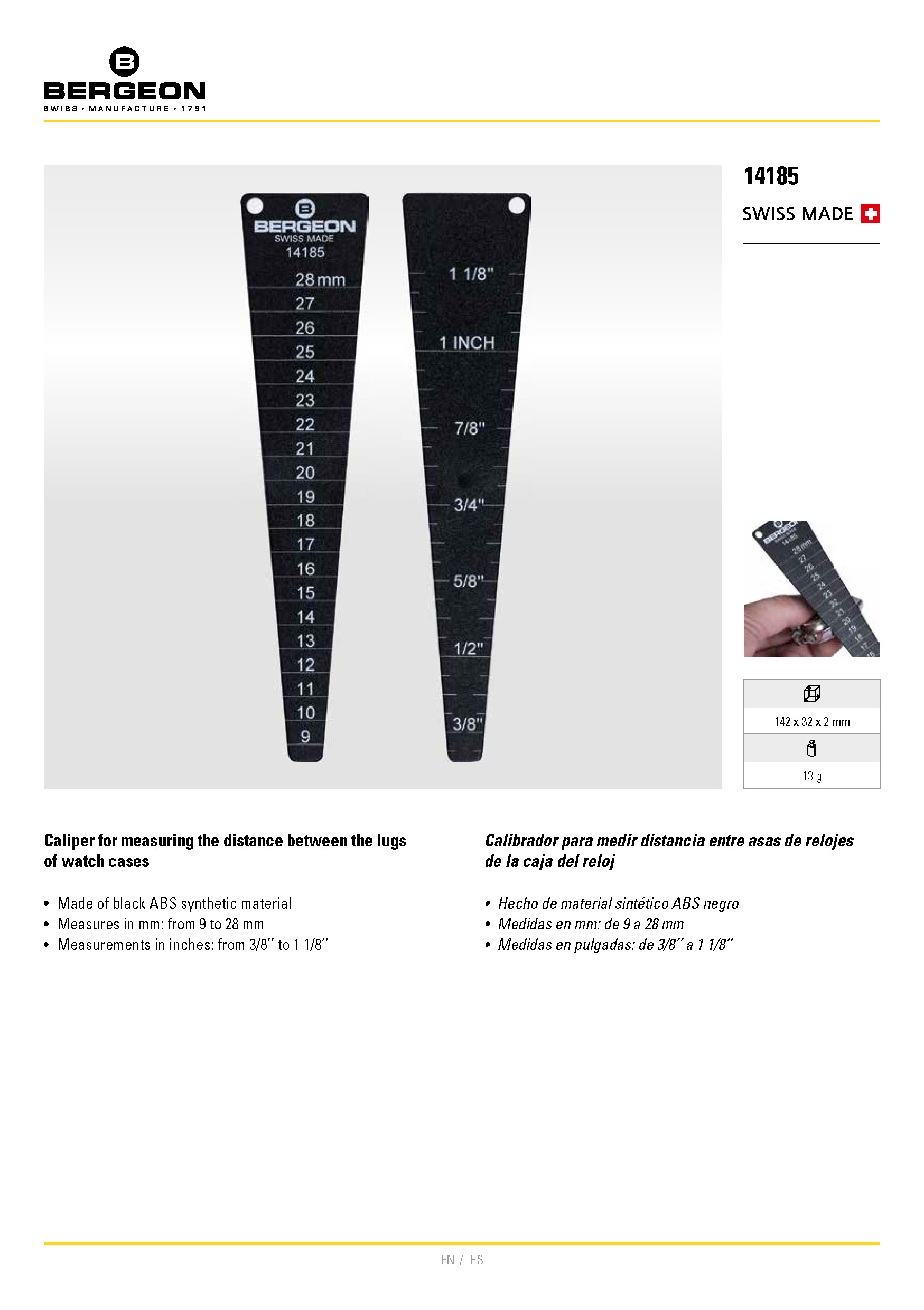 BERGEON 버전 14185 스프링바 / 케이스 러그 게이지 - 플라스틱