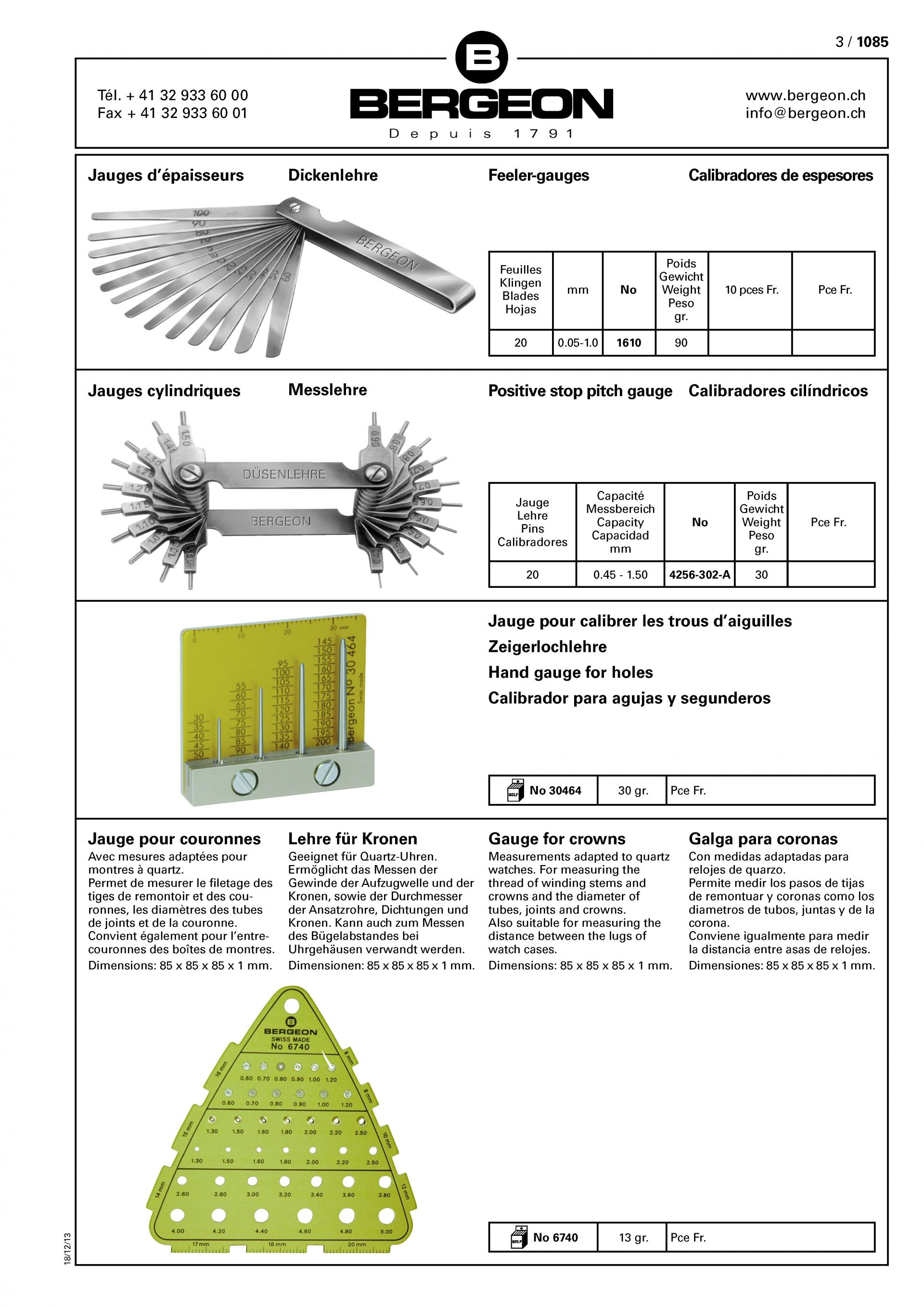 BERGEON 1610 두께 피러 게이지 0.05mm에서 1.00mm