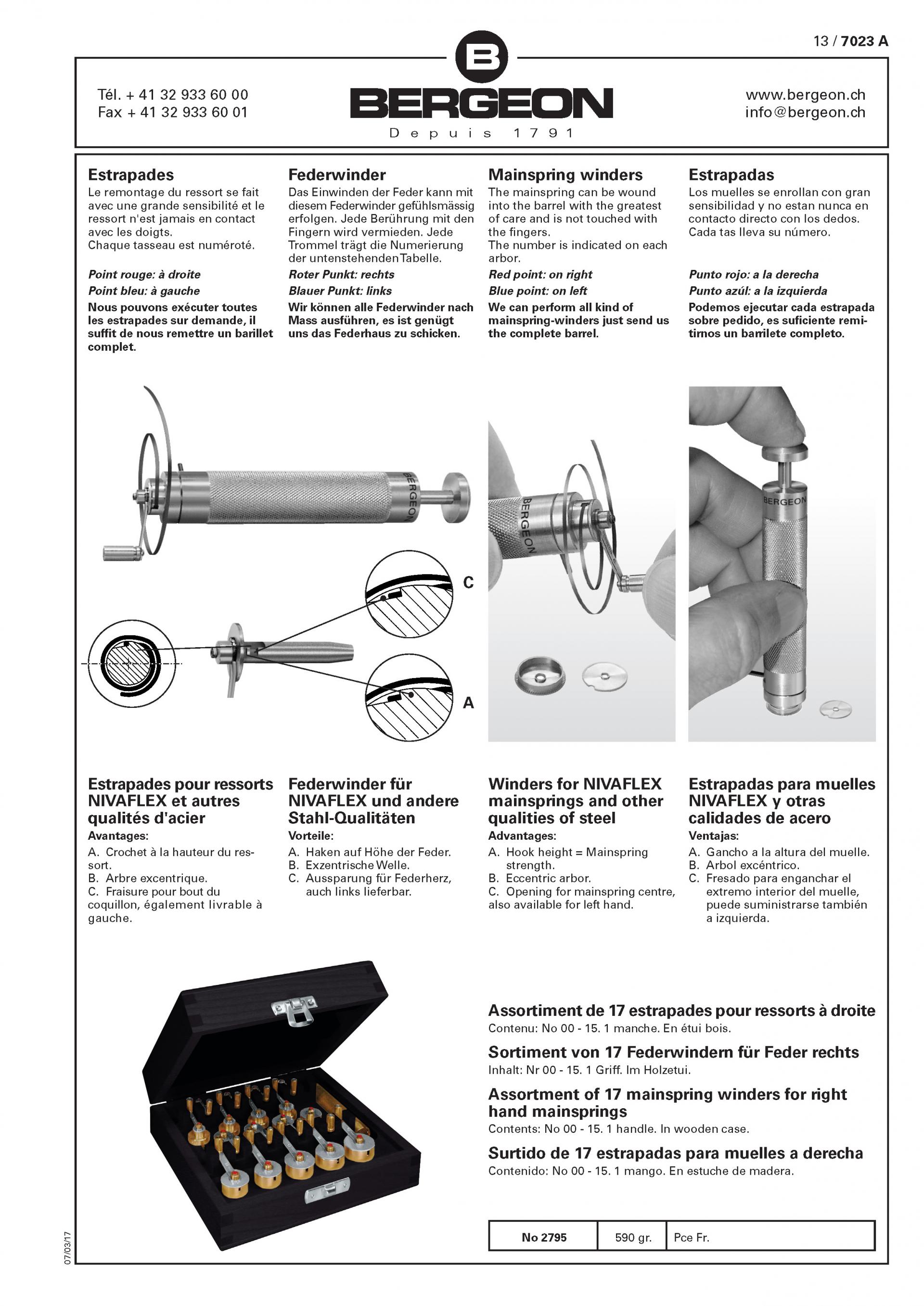 Bergeon 30082-M Mainspring Winder Handle Right Handed