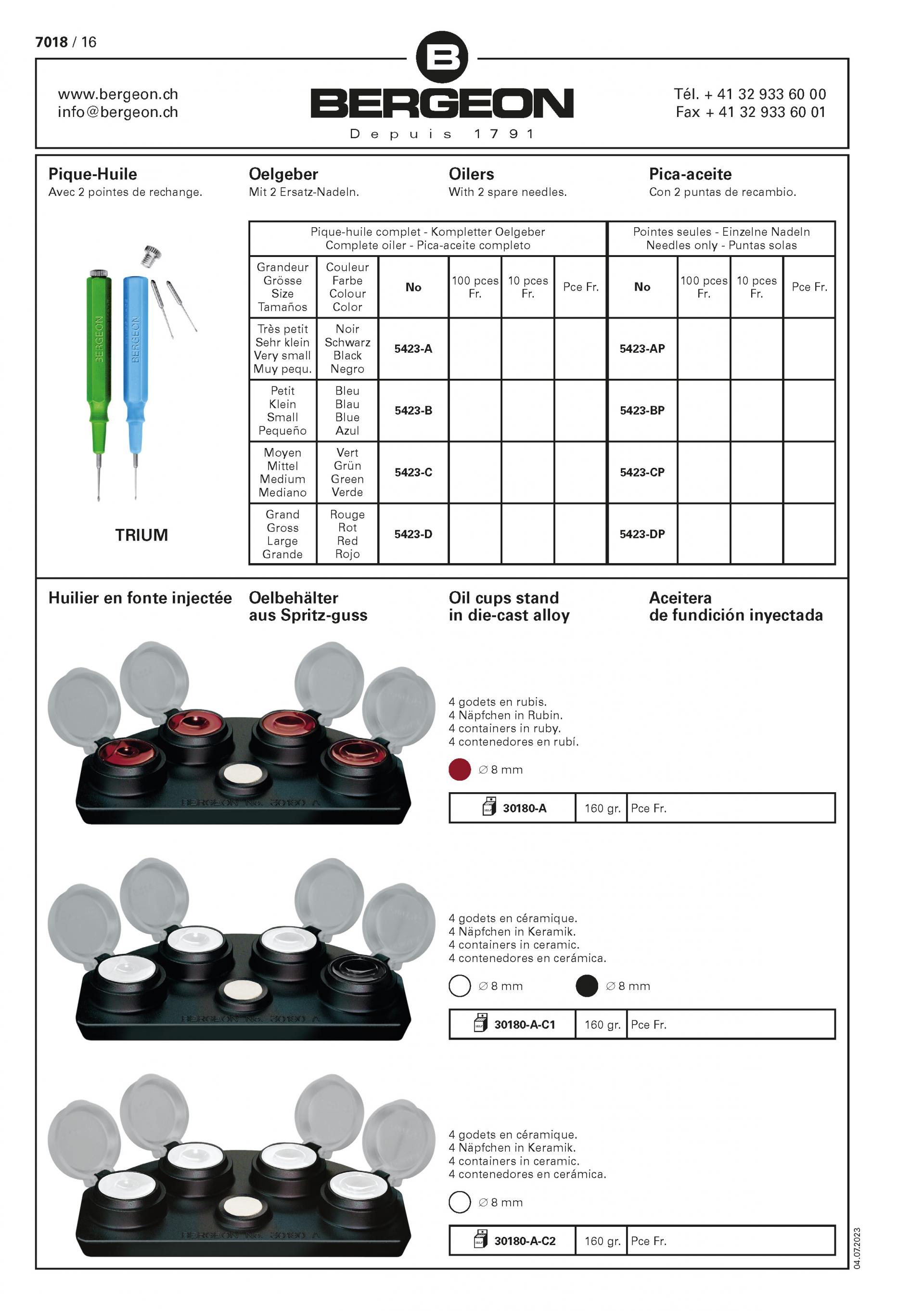BERGEON 30180-A 루비 오일 웰이 포함된 주물형 워치 오일 딥 오일러 스탠드