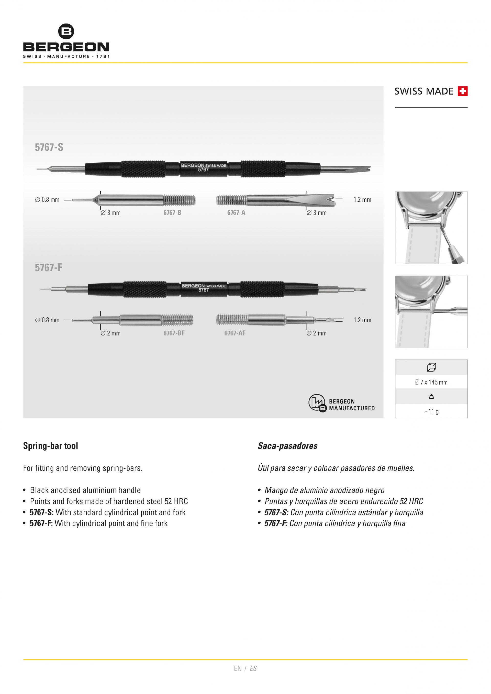BERGEON 5767-S 스위스 스프링 바 툴 – 알루미늄 워치 밴드 툴