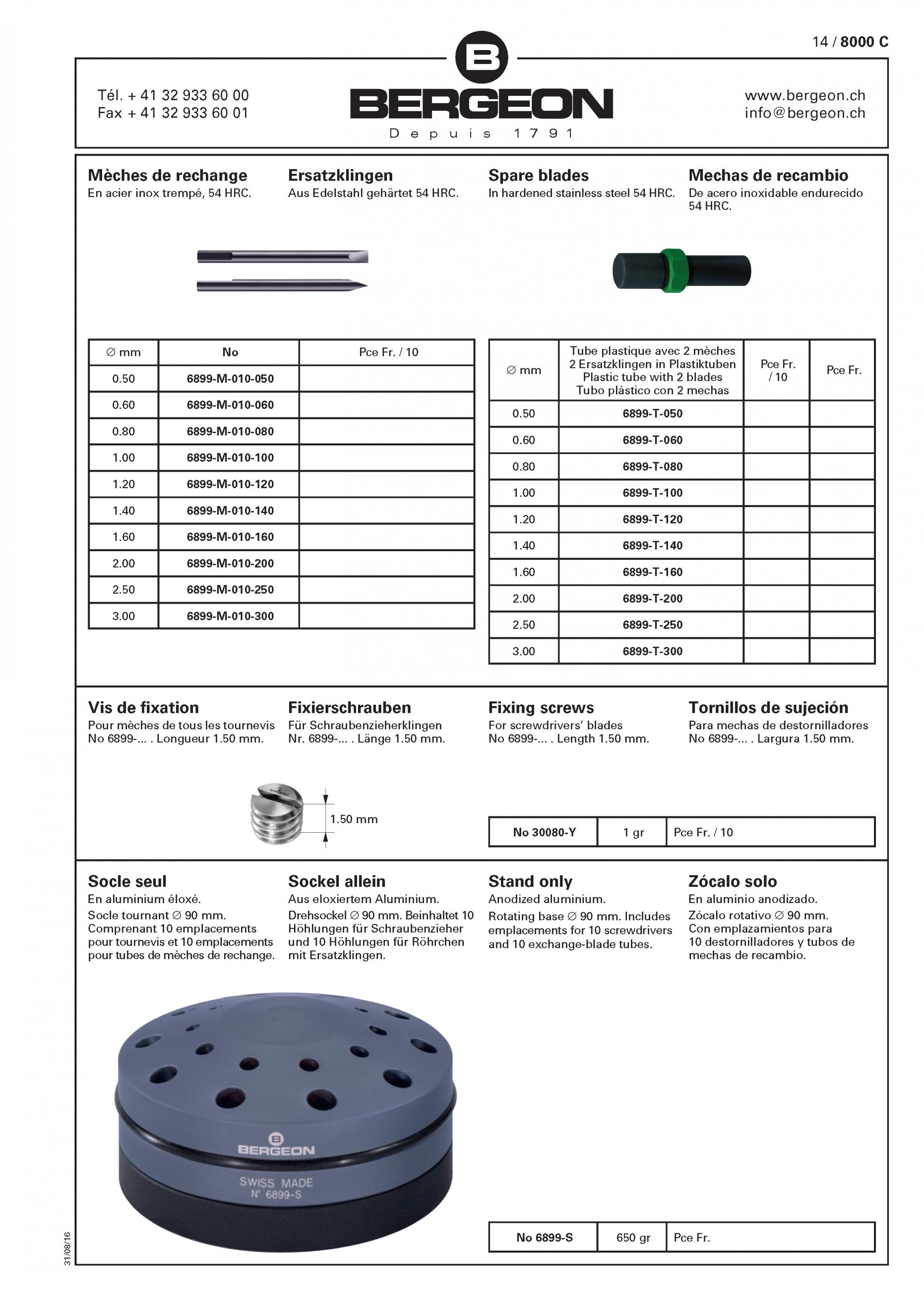이 제품은 BERGEON 에르고노믹 스크루드라이버 6899, 7899, 7965 및 30081에 대한 스페어 블레이드입니다. 저희가 보유한 스크루드라이버 블레이드 중 가장 높은 품질을 자랑합니다.