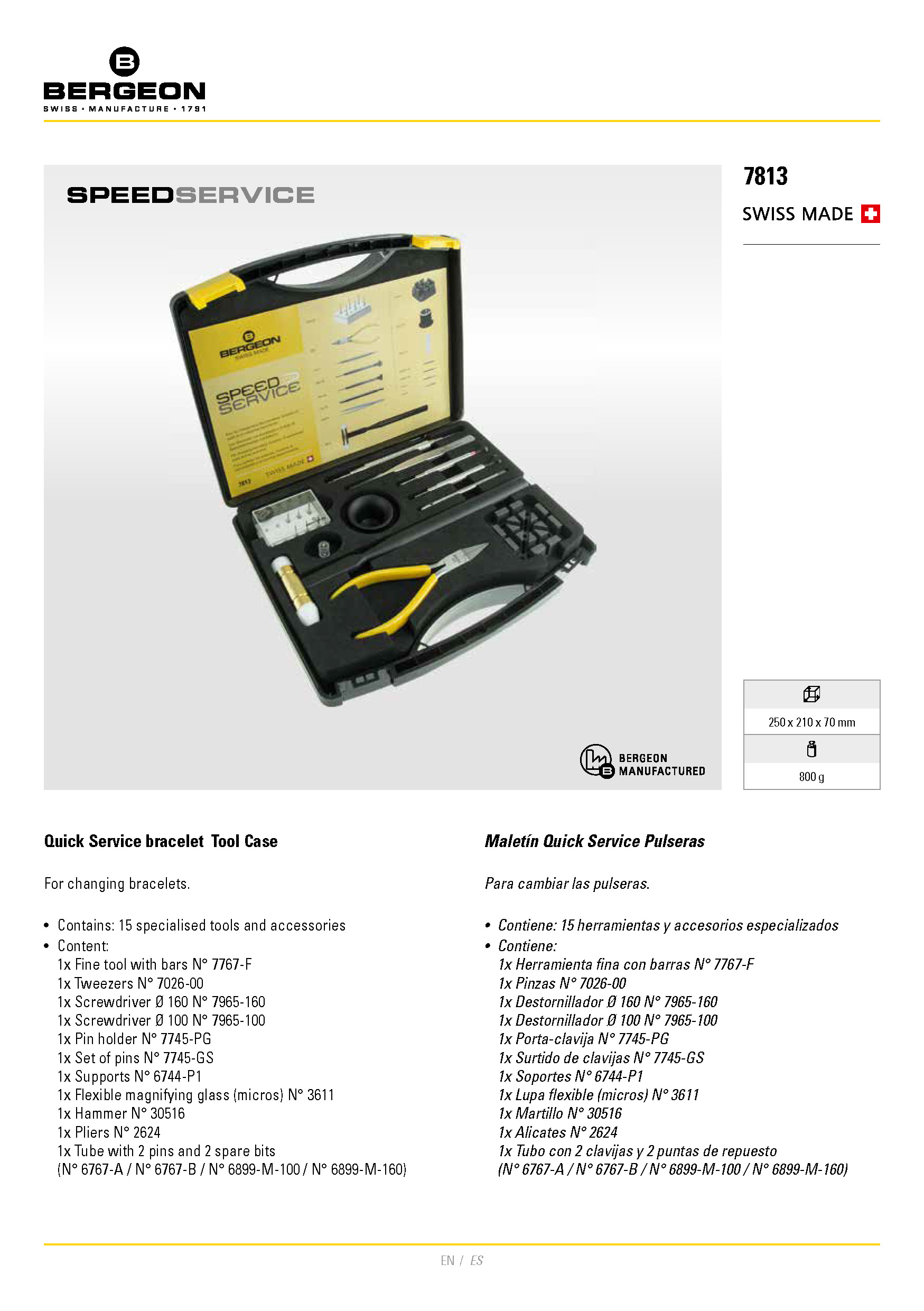 BERGEON 7813 SPEED SERVICE TOOL SET FOR WATCH BAND REPAIR