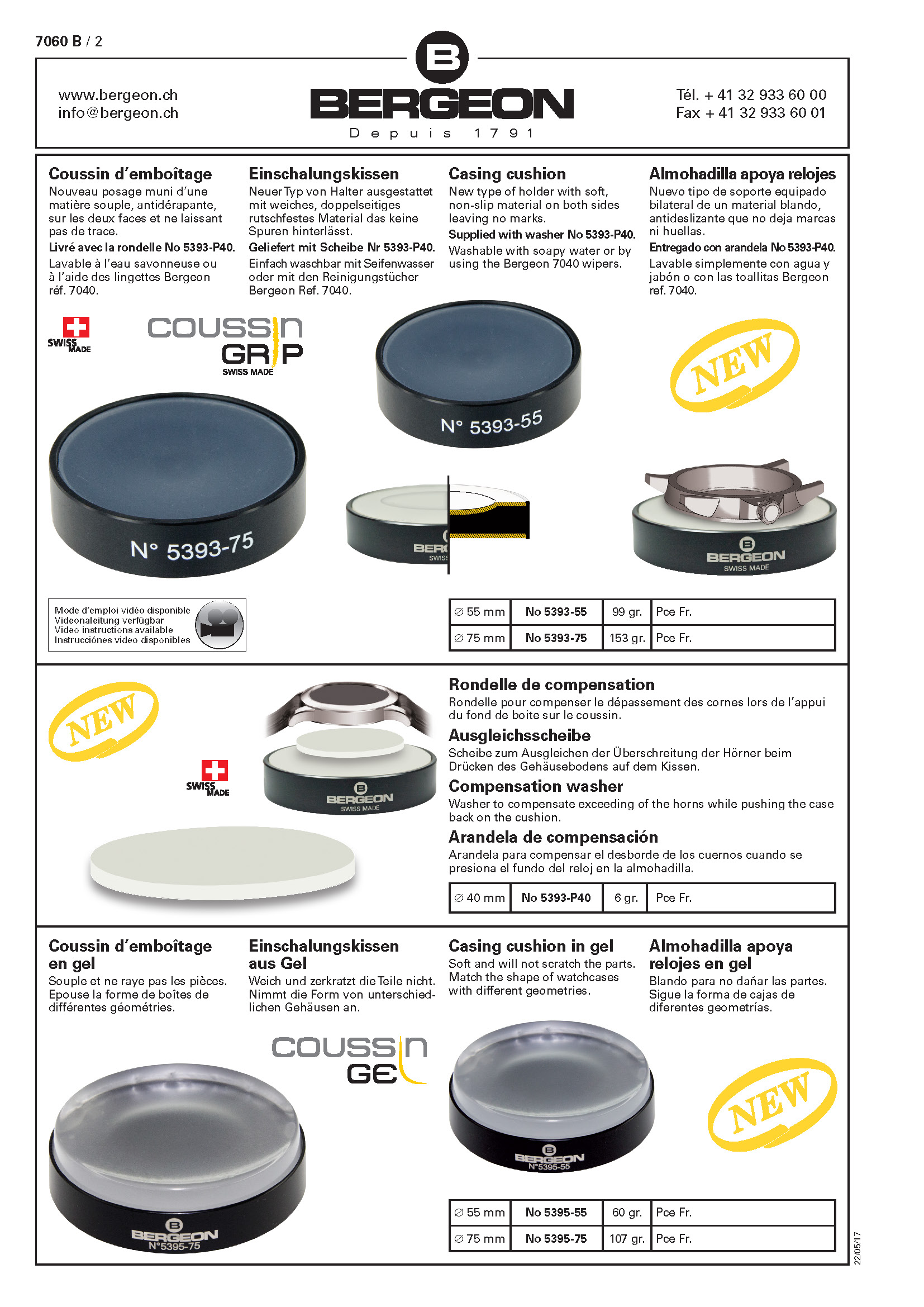패드에 인쇄된 내용이 Bergeon의 플라스틱 포장에 붙어 벗겨질 수 있습니다. 이는 정상적인 현상이며 도구의 유용성에는 영향을 미치지 않습니다.
