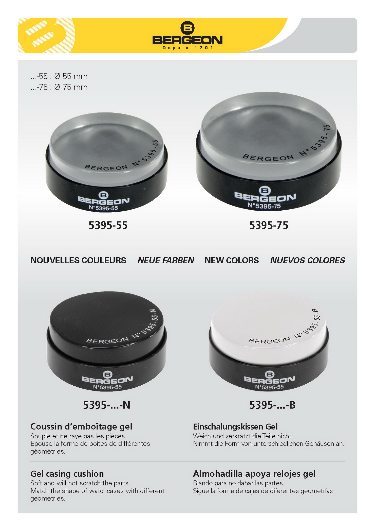 패드에 인쇄된 내용이 Bergeon의 플라스틱 포장에 붙어 벗겨질 수 있습니다. 이는 정상적인 현상이며 도구의 유용성에는 영향을 미치지 않습니다.
