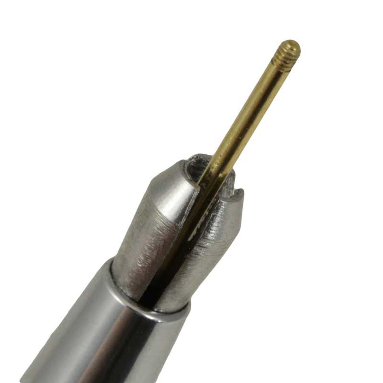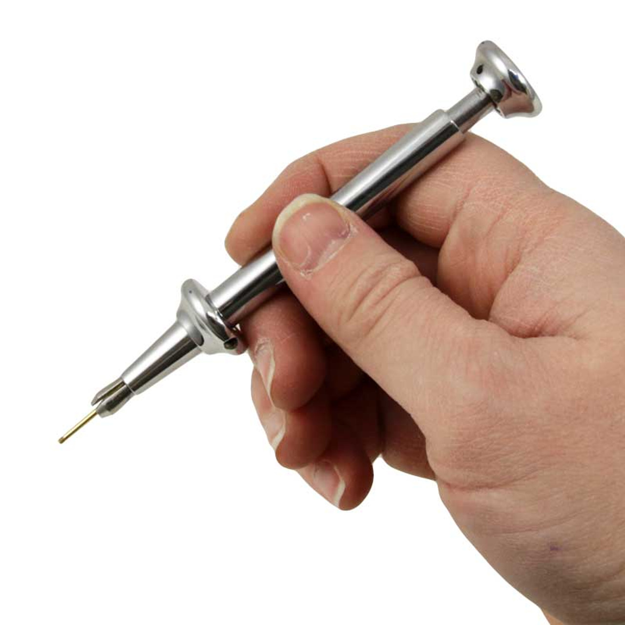 이 도구는 나사와 너트를 쉽게 잡고 배치할 수 있게 해줍니다. 3개의 조각으로 이루어진 척을 열고 닫기 위한 눌러서 작동하는 스프링 액션 기능이 있습니다. 조각 내부는 더 나은 고정을 위해 홈이 파여 있으며, 작동 범위는 1.65mm에서 3.50mm(최대 개방)입니다. 또한 나사 스타터로도 유용하며, 접근하기 어려운 곳에 나사를 나사산에 맞출 때 나사 머리를 안전하게 잡아줍니다. 크롬 도금된 강철로 제작되었으며, 전체 길이는 4인치입니다.