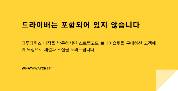 해당 상품에는 드라이버가 포함되지 않습니다. 브레이슬릿의 체결과 조절은 최초 한 번이니 가까운 시계 수리점을 찾아 문의하실 것을 권해드립니다. 시계와 함께 와루와치즈를 방문하시면 무상으로 체결과 조절을 도와드립니다.