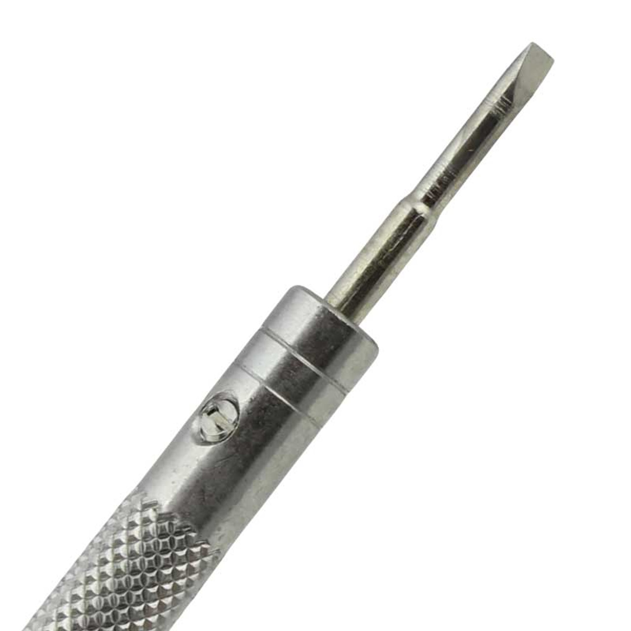 놀라운 가치를 지닌 이 9피스 세트는 품질 좋은 유럽 스타일의 드라이버를 특징으로 합니다. 8가지 표준 크기(0.60, 0.80, 1.00, 1.20, 1.40, 1.60, 1.80, 2.00mm)와 하나의 필립스 드라이버(1.60mm 크기)가 포함되어 있습니다. 각 드라이버에는 크기가 인쇄되어 있으며, 쉽게 식별할 수 있도록 색상 코드가 적용되어 있습니다. 스틸 블레이드는 세트 스크류로 단단히 고정되어 있으며, 경도가 35-40 HRC로 강화되어 있고, 니켈 도금 처리되어 있습니다. 여분의 블레이드는 각각 하나씩 포함되어 있으며, 색상 코드가 있는 튜브에 편리하게 배치되어 있습니다. 매력적인 파란색 아노다이즈드 베이스는 무게가 있어 작업대에서 제자리를 유지하며, 부드럽게 회전합니다. 베이스 주위의 고무 그립 밴드는 블레이드 선택을 더욱 쉽게 만들어 줍니다.
