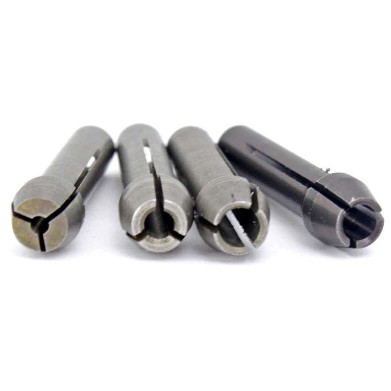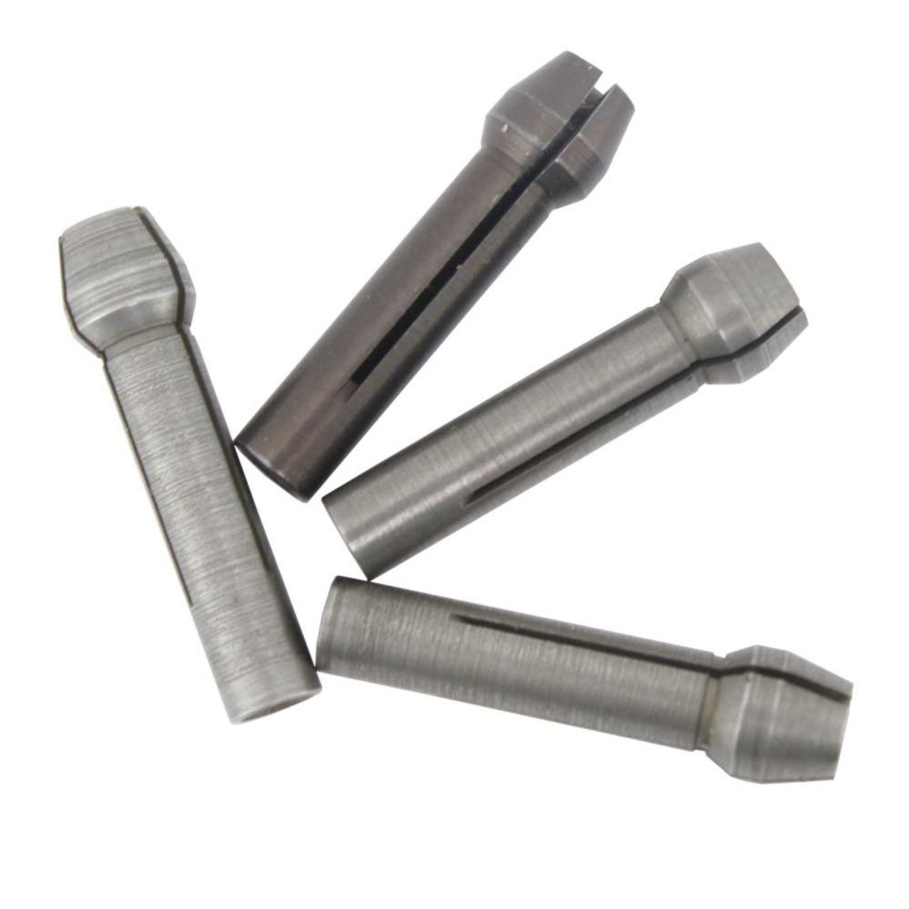 이 콜렛은 Foredom No. 8 및 No. 28 스타일 핸드피스에 적합합니다. 다양한 샹크 크기를 가진 회전 공구 액세서리를 사용할 수 있는 옵션으로 다재다능성을 향상시킵니다. 별도로 구매할 수도 있습니다. 크기가 1-16" (1.6mm), 3/32" (2.35mm), 1/8" (3.18mm), 및 3mm인 4개의 강철 콜렛 세트입니다.