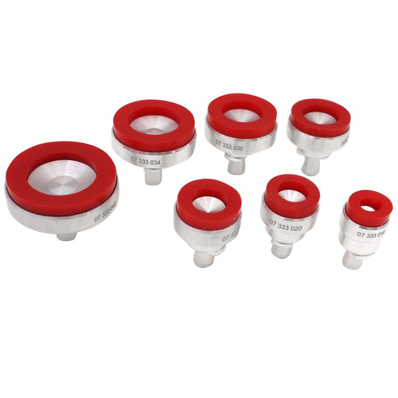 이 일곱 개의 Horotec 다이는 나사식 뒷면 시계 케이스와 나사식 베젤을 열고 닫는 데 도움을 주기 위해 설계되었습니다. 이 다이는 가장자리에 특수 고무 같은 재질의 스트립이 있어 시계 케이스 뒷면이나 베젤에 흡착력을 생성하여 시계 케이스 뒷면을 쉽게 열 수 있게 합니다. 추가로, 이 흡착 씰은 시계 케이스 뒷면에 흠집을 내거나 다른 손상을 일으키지 않으므로 모든 시계 케이스 뒷면에서 안전하게 사용할 수 있습니다.