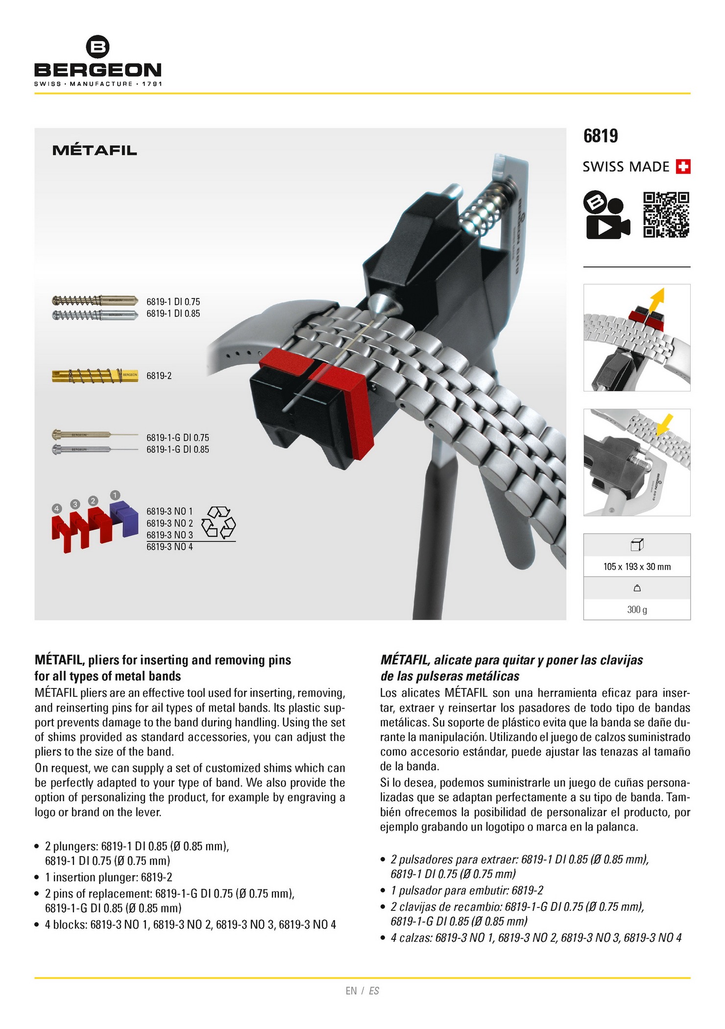 BERGEON 6819 밴드 핀 플라이어 교체용 핀 2종 중 선택