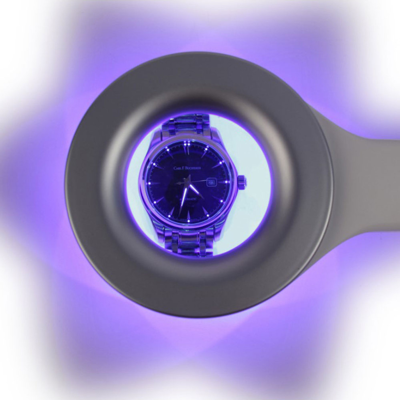 이 슈퍼 루미노바 돋보기는 밝은 낮에도 발광 물체를 볼 수 있게 해줍니다. 이 램프는 품질 검사 시 어두운 방에 갇히지 않도록 설계되었으며, 3단계의 강도를 가진 백색광과 UV광의 2가지 조명이 장착되어 있습니다. 2배 확대 렌즈는 시계 다이얼 전체를 자세히 볼 수 있게 해줍니다.