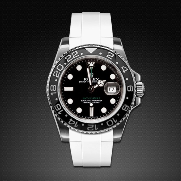 가황 듀얼 컬러 고무 스트랩은 롤렉스 GMT 마스터 II 세라믹 베젤 모델에 정확히 맞도록 설계되었습니다. 차단된 통합 엔지니어링 기술을 사용해 제작된 이 스트랩은 GMT II 세라믹 케이스에 완벽히 밀착되며, 움직이지 않는 고정 삽입물을 포함하고 있습니다.